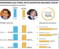 Primeros resultados dan ligera ventaja a Lasso frente a Arauz en una ajustada pelea por las presidenciales.